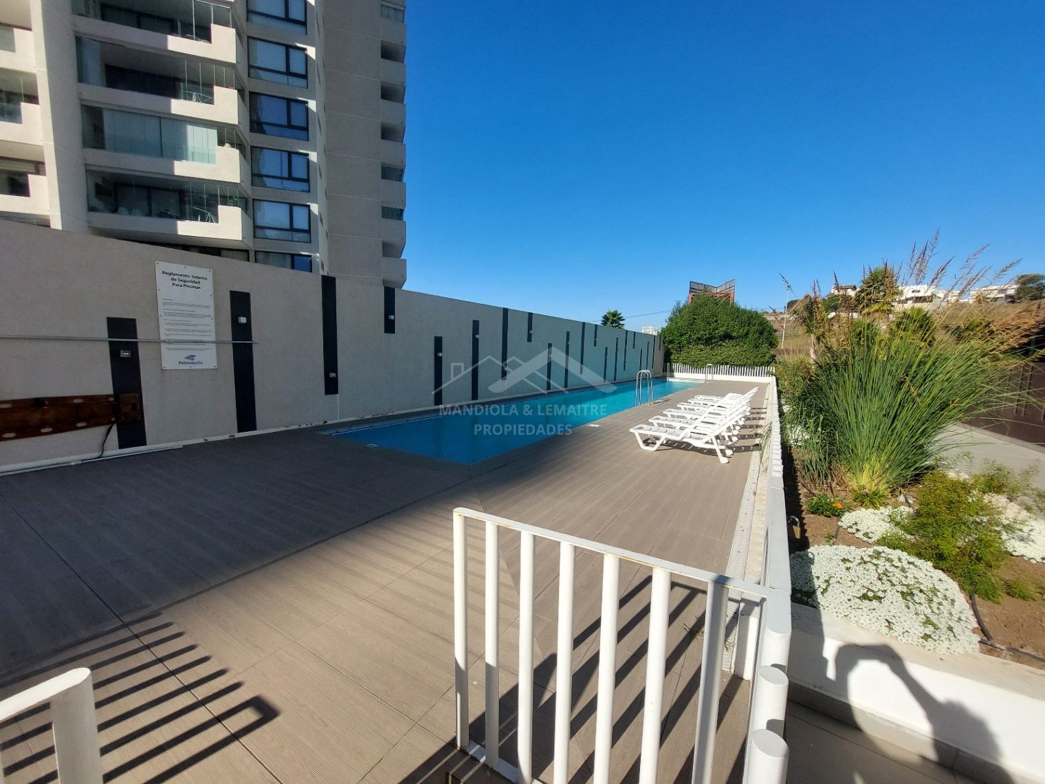 Ubicado en la prestigiosa calle Arenales de Costas de Montemar, Concón, este atractivo departamento de 55.83 m² es una excelente oportunidad para quienes buscan comodidad y calidad de vida. Con una antigüedad de solo 5 años, el inmueble cuenta con una disposición frontal y una orientación este que permite disfrutar de luminosos amaneceres. Compuesto por 2 ambientes, incluye un acogedor dormitorio y un baño completo, ideal para parejas o profesionales que deseen un espacio funcional y acogedor.