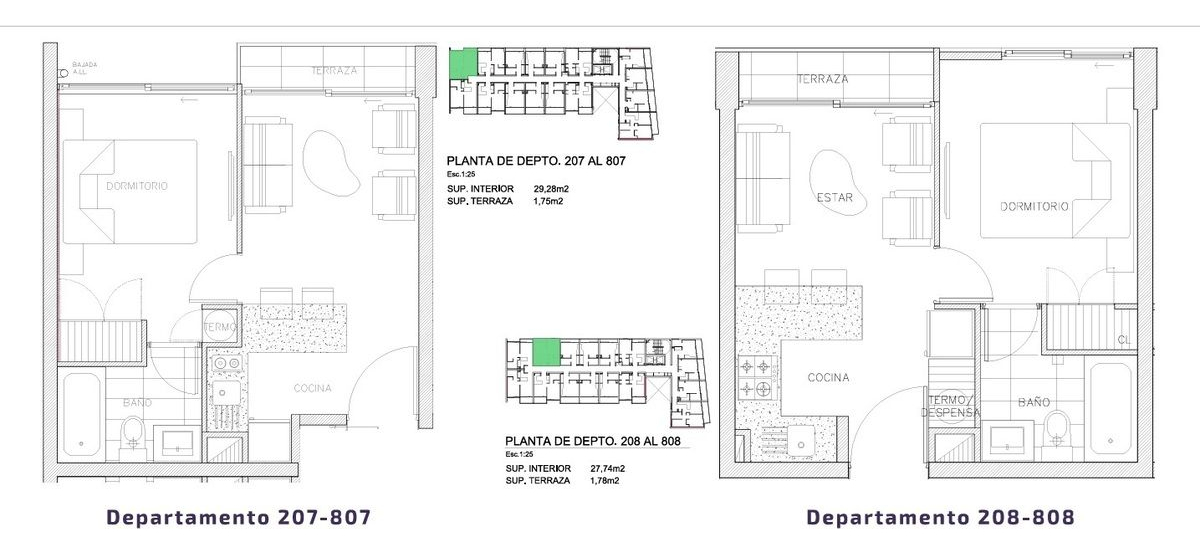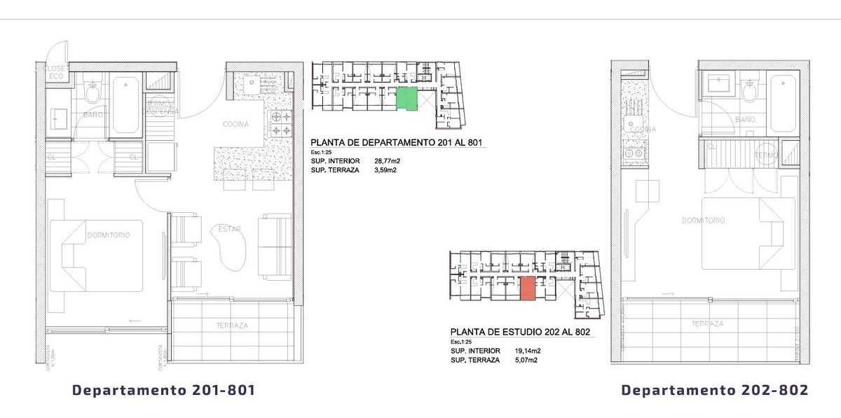 Departamentos tipo estudio, 1 dormitorio y 2 dormitorios, ideales para arriendo.